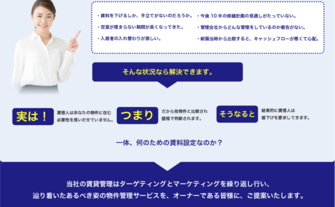 賃料水準を保ちながら満室経営をする方法とは? 不動産業者は空室に対してマーケティングをしてターゲットを決めて、そのターゲットに向けて募集したり周辺の状況や市況を知り、提案をしてくれていると思っていませんか?ほかの業種では...